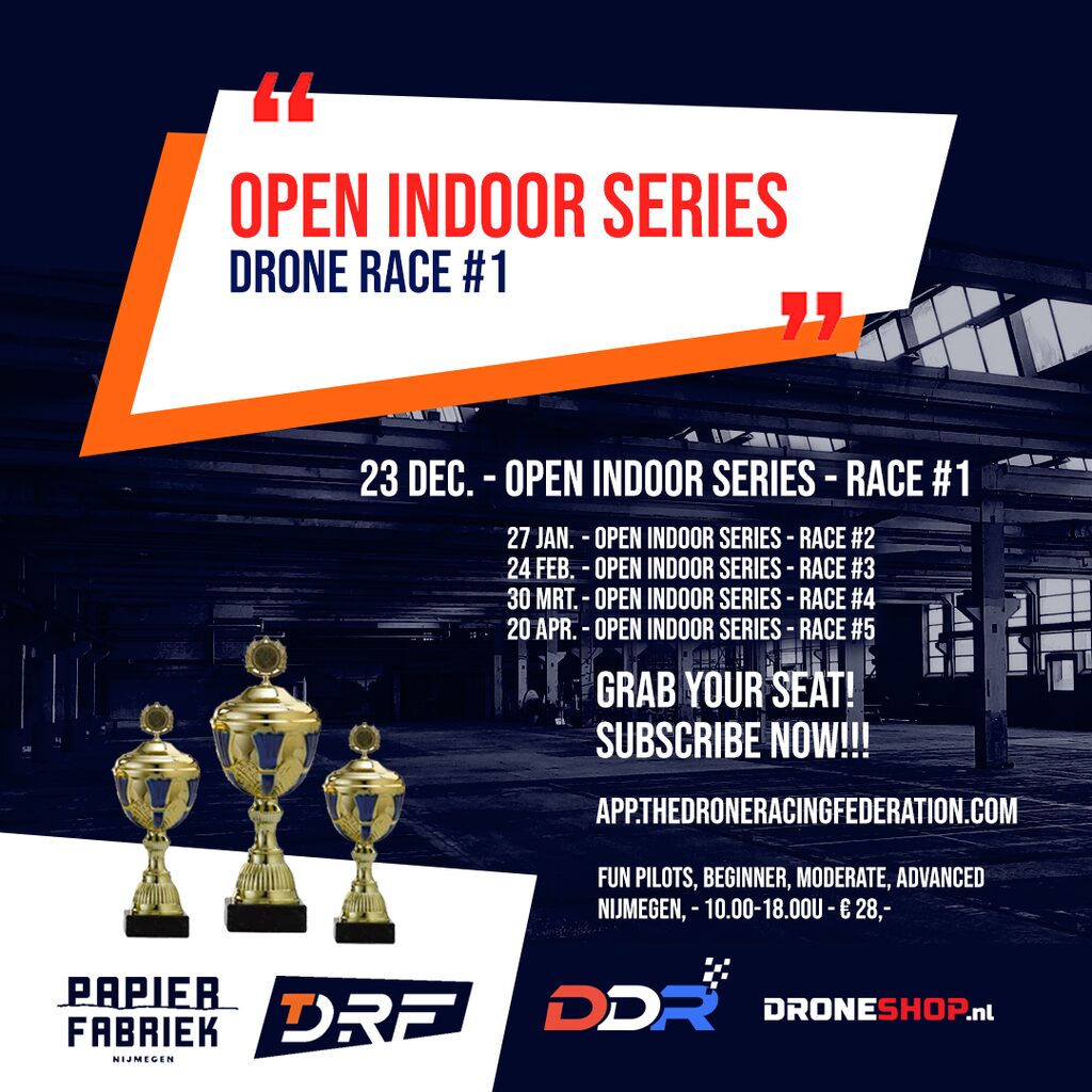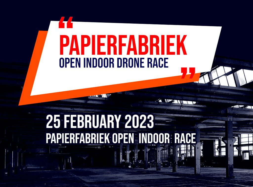 Open Indoor Drone Race op een vette industriƫle locatie.